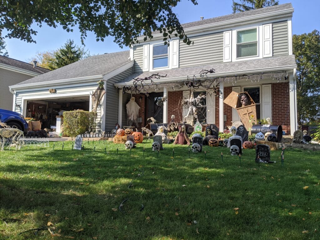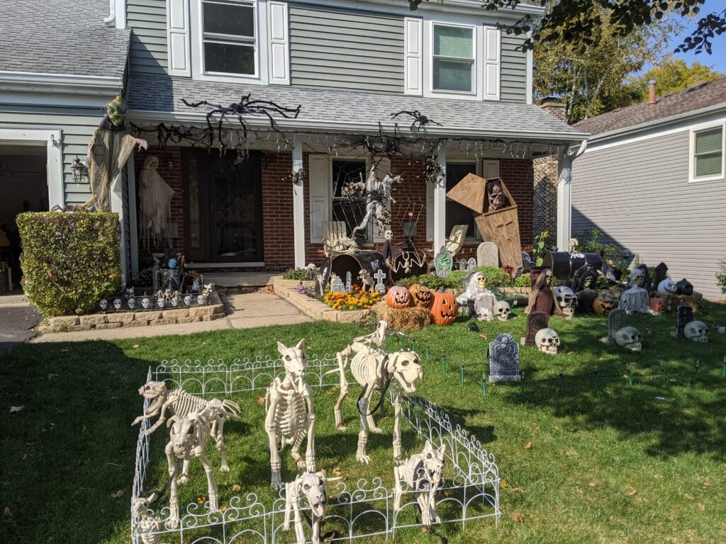 If you are going to take photos in front of our 12ft Skeleton, please DO NOT WALK THROUGH THE YARD. There are several trip hazards. Just walk along our driveway. Also, do not go past the fenced area around Skelly. We encourage you to take photos, just be safe!
